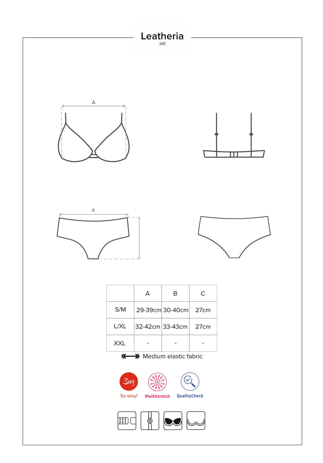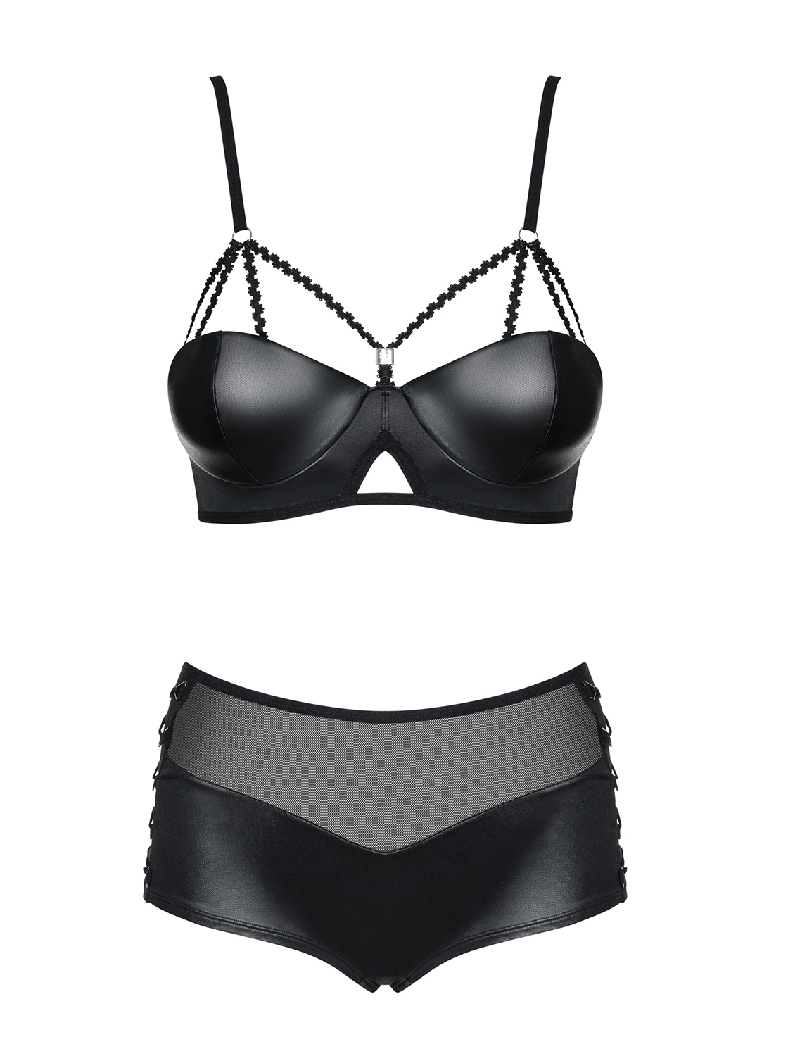 Obsessive Leatheria Zmysłowy Komplet Biustonosz + Szorty S/M