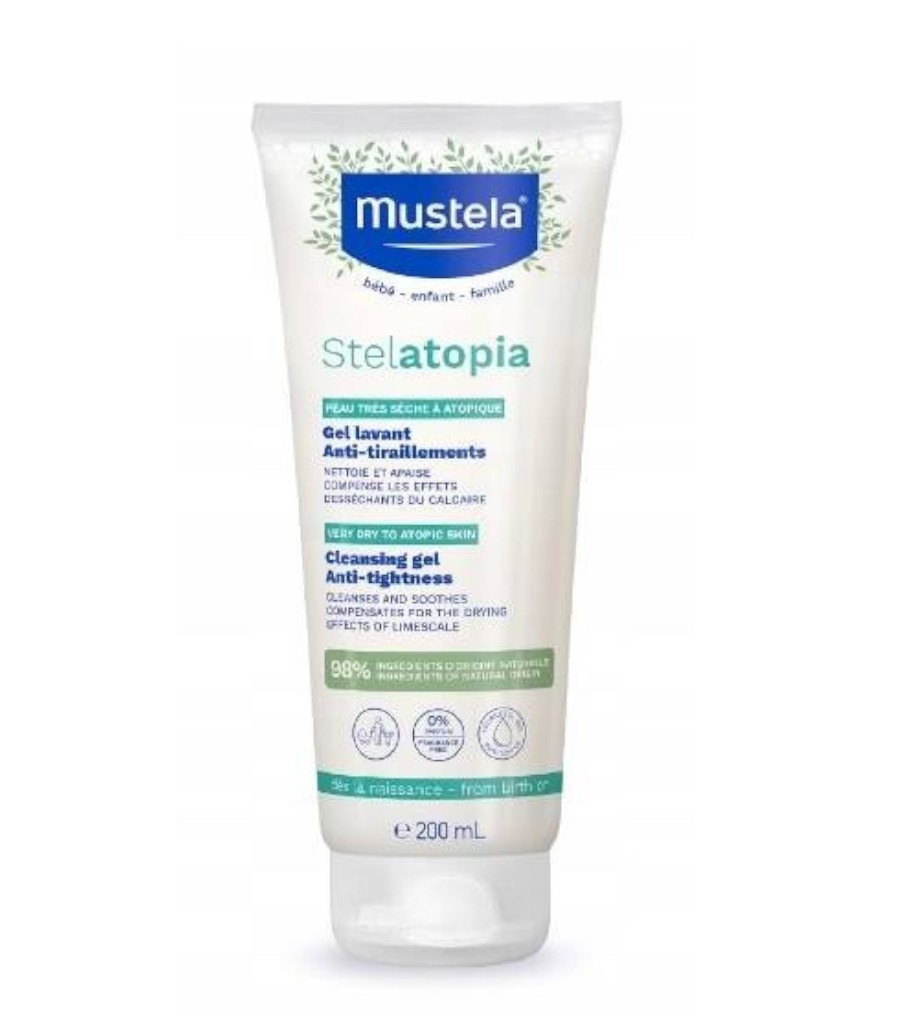 Żel Mustela Stelatopia delikatnie oczyszcza i koi suchą skórę skłonną do atopii i swędzenia. Formuła o fizjologicznym pH nie powoduje wysuszenia skóry i jest wystarczająco delikatna do stosowania w przypadku noworodków. Składa się w 98% z naturalnych składników, takich jak Avocado Perseose® i masło Shea, które odżywiają, zmiękczają i koją skórę, jednocześnie chroniąc ją przed szkodliwymi czynnikami zewnętrznymi. Żel zawiera również w składzie olejek ze słonecznika, który pomaga skórze w utrzymaniu jej naturalnej bariery ochronnej oraz w zmniejszeniu transepidemialnej utraty wody. Natomiast gliceryna pochodzenia roślinnego utrzymuje odpowiednie nawilżenie skóry, zapewniając długotrwałą ulgę w dolegliwościach skórnych. Produkt bez parabenów, ftalanów i fenoksyetanolu.
