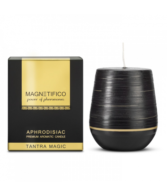 Afrodyzjakowa świeca zapachowa z serii APHRODISIAC od MAGNETIFICO - tworząca wyjątkową, intymną i uwodzicielską atmosferę bazującą na nutach drzewnych, głównie drzewie sandałowym.
