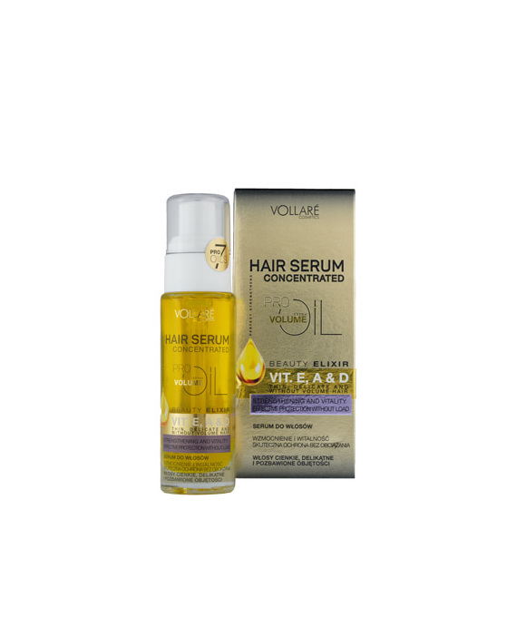 Olejek Vollaré Cosmetics PROils Extra Volume do włosów cienkich, delikatnych i pozbawionych objętości doskonale wzmacnia oraz dostarcza odpowiednią ilość substancji odżywczych. Unikalna formuła drogocennych olejów, bogata w witaminy E, A i D, pielęgnuje, przeciwdziała procesom starzenia oraz gwarantuje skuteczną i optymalną ochronę.