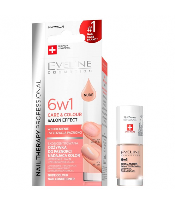 Eveline Cosmetics Nail Therapy Professional 6w1 Care & Colour skoncentrowana odżywka do paznokci nadająca kolor Nude 5ml