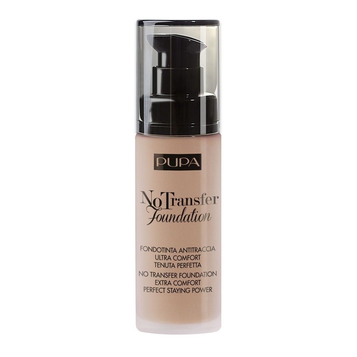 Podkład No Transfer Foundation o wzbogaconej i ulepszonej formule. Posiada właściwości nawilżające, nie ściera się i nie zostawia śladów. Chroni skórę i zapewnia jej elastyczność, gładkość i uczucie komfortu. Minimalizuje niedoskonałości cery oraz matuje ją; idealnie wyrównuje koloryt skóry, nie powodując efektu maski. Zawiera filtr ochronny SPF 15. Delikatna oraz lekka konsystencja zapewnia łatwą aplikację. Utrzymuje się nawet do 14 godzin.