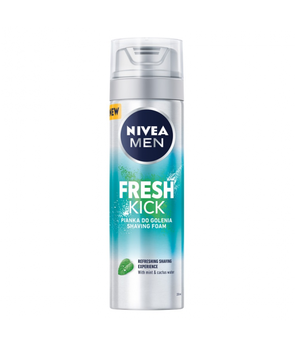 NIVEA MEN FRESH KICK Pianka do golenia. Odświeżająca formuła z miętą oraz wodą kaktusową natychmiastowo odświeżą skórę i pozostawia uczucie nawilżenia skóry. Dodatkowo chroni nie tylko przed mikrozacięciami ale również przed podrażnieniami skóry. Pomaga, aby golenie było komfortowe. Aby zachować zdrowy i zadbany wygląd skóry, regularnie stosuj kosmetyki przeznaczone do pielęgnacji skóry mężczyzn z szerokiej gamy produktów NIVEA MEN z linii Fresh Kick: Odświeżający żel do golenia czy Wodę po goleniu oraz Krem-żel nawilżający skórę twarzy, ciała i rąk. Tolerancja dla skóry potwierdzona dermatologicznie.