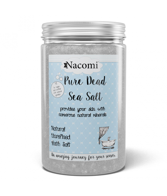 Naturalna, bezzapachowa, czysta sól z Morza Martwego jest przeznaczona do regularnego stosowania. Sól zawiera w sobie mnóstwo minerałów i pierwiastków, obfituje m.in. w sód, żelazo, chrom, cynk i miedź. Sól posiada potwierdzone działanie przeciwzapalne, bakteriobójcze i grzybobójcze. Łagodzi objawy schorzeń dermatologicznych i wspomaga proces oczyszczania organizmu z toksyn. Kąpiel w ciepłej wodzie z dodatkiem Naturalnej Soli z Morza Martwego Nacomi pomaga odprężyć ciało i umysł, oraz przygotowuje skórę do dalszych zabiegów kosmetycznych.