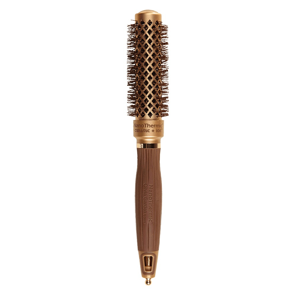 Nano Thermic Ceramic+Ion Round Thermal Hairbrush to szczotka do modelowania włosów o średnicy 24mm stworzona przez markę Olivia Garden. Sprawdzi się doskonale przy pielęgnacji i modelowaniu włosów. Dzięki specjalnym otworom, przyspiesza przepływ powietrza, skracając czas suszenia. Szczotka została wykonana z najwyższą dbałością o szczegóły z wysokiej jakości materiałów. Jej nowoczesna, ceramiczna powłoka błyskawicznie się nagrzewa i długo utrzymuje ciepło. Włosie szczotki ma właściwości antystatyczne, dzięki czemu Nano Thermic Ceramic+Ion Round Thermal Hairbrush nie elektryzuje włosów. Jest wyjątkowo łagodne dla włosów i skóry głowy. Dzięki zastosowaniu technologii turmalinowej oraz jonizacji włosy po użyciu szczotki wyróżniają się wyjątkowym połyskiem oraz nie puszą się. Szczotka ma właściwości antybakteryjne. Nadaje włosom zdrowy wygląd oraz sprawia, że ładnie się układają.