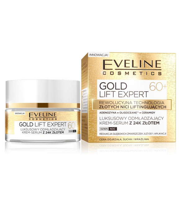 Eveline Cosmetics Gold Lift Expert 60+ luksusowy odmładzający krem-serum z 24k złotem dzień/noc 50ml