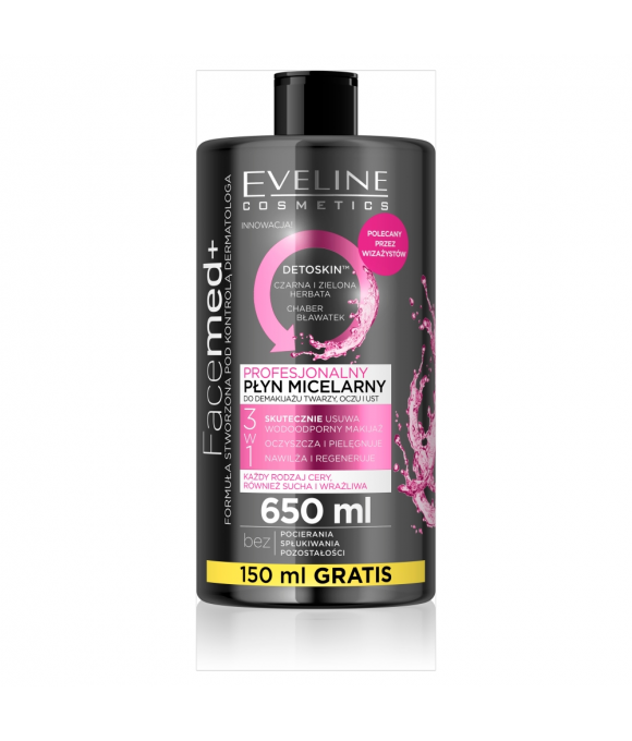 Eveline Cosmetics Facemed+ 3w1 profesjonalny płyn micelarny do każdego rodzaju cery 650ml