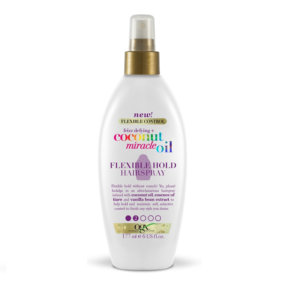 Organix Frizz-Defying + Coconut Miracle Oil Flexible Hold Hairspray lakier do włosów nadający połysk 177ml