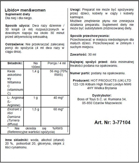Hot Krople miłości eliksir podnosi libido podnieca 30 ml