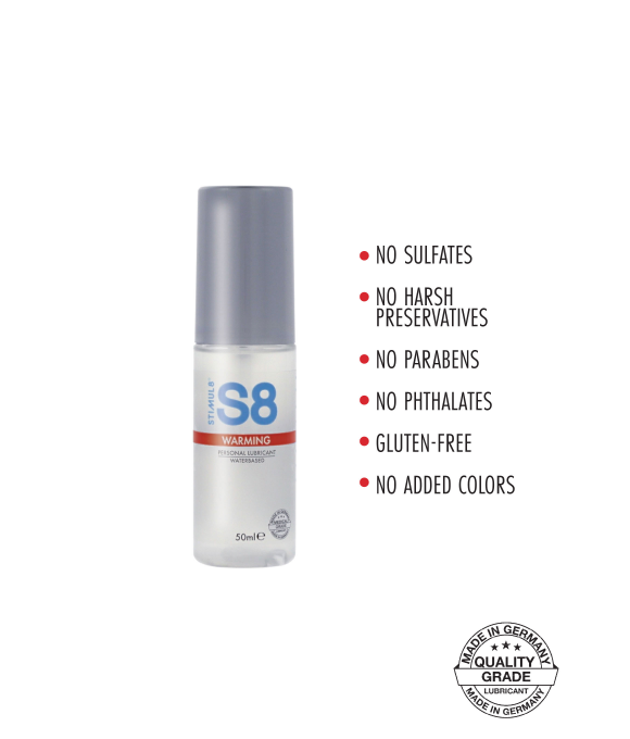 The premium Waterbase Warming Lubricant by S8 is a perfect match with consumers looking for a body-safe, quality lube to enhance intimacy and smoothen out their intimate adventures. This fantastic, long-lasting formula by S8 is completely paraben-free, phthalate-free, gluten-free, sulfate-free, plus contains no added colors or harsh preservatives for an irresistible ‘natural’ appeal. When applied, the S8 Waterbase Warming Lubricant has a gentle warming effect on the skin, adding a pleasurable touch of hot passion right where you want it!