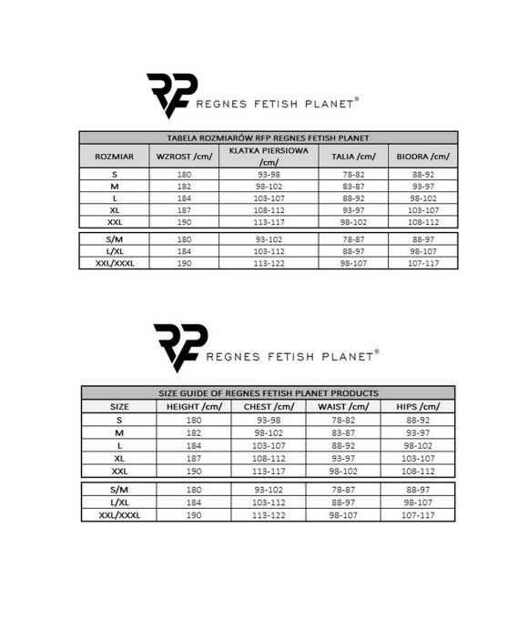 RFP regnes fetish planet to pasja, kreatywność, oryginalność... To otwarcie na nowe doznania i bagaż zaskakujących i zapadających w pamięć momentów. Marka kieruje swoje produkty do osób ceniących sobie modę, seksowną bieliznę, odzież clubwear, a także mających jasno określone upodobania fetish. Mężczyzn kreatywnych, ciekawych, lubiących eksperymentować, świadomych swoich potrzeb. Poszukujących nowych doznań, inspiracji. Oczekujących wysokiej jakości produktu. Wygodnego, trwałego i wyróżniającego się niecodziennym wzornictwem. Produkty oznaczone logo RFP regnes fetish planet pięknie wyglądają, są wygodne i trwałe. Podnoszą one temperaturę zabaw, a jednocześnie pozwalają na inspirujące eksperymenty. Majtki z rozwiązaniem BigBossEFFECT, koszulki z dostępem do piersi, zestawy „soft bondage” z gumek, majtki z otwartym tyłem, otwarte kieszonki w szortach... Te i inne rozwiązania zostaną docenione i z pewnością zagwarantują miłe doznania. Opis produktu: stringi / ozdobne, pionowe wstawki z elastycznej krateczki z przodu / /elastyczny materiał / miła w dotyku czarna gumka na obwodzie / kieszkonka BigBoss / wzmacnijące przeszycia; 95% polyester / 5% elastane