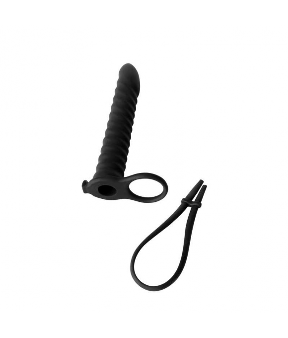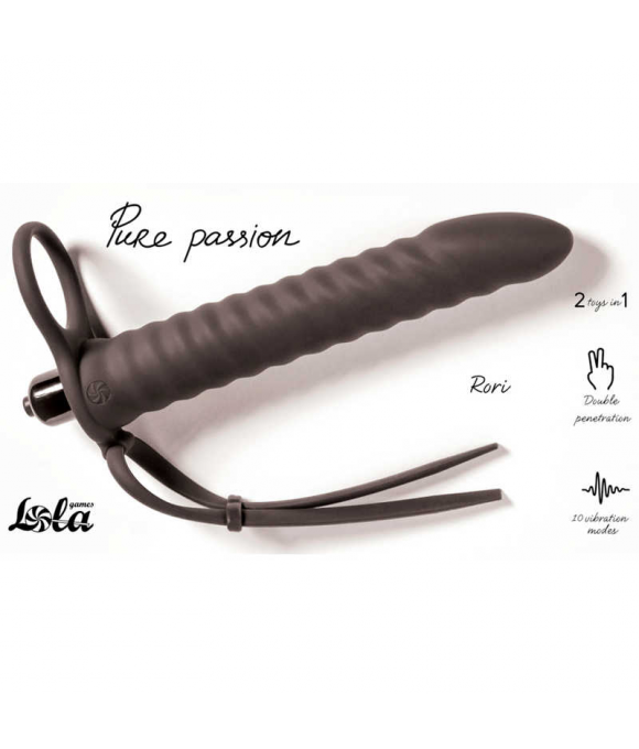 Dysza Rori z podwójną penetracją, wykonana z hipoalergicznego silikonu. Ma reliefowy i elastyczny kształt. Mocno mocuje się do podstawy penisa dzięki silikonowemu pierścieniowi. Dobrze się rozciąga i pasuje do każdego rozmiaru. Od spodu nasadka ma lasso do dodatkowego mocowania za moszną. Dodatkową stymulację zapewnia 10-biegowy wibrujący pocisk. Można go łatwo zdjąć z silikonowej końcówki i używać oddzielnie. Wibro pocisk zasilany jest 1 baterią AAA (brak w zestawie). Wewnętrzna średnica pierścionka to 3cm. Długość dyszy 16,2 cm.Materiał: silikonDługość, cm: 16,2Średnica, cm: 2,5Wibracje: takKolor czarnyZasilanie: 1 bateria AAA (brak w zestawie)Dodatek: Średnica wewnętrzna 3cmWaga, g: 93Dla kogo: dla paryLiczba trybów wibracji: 1Zalecany smar: na bazie wody