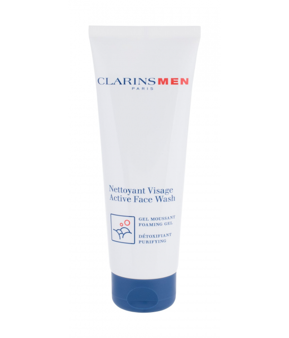Clarins Men Active Face Wash – żel do mycia twarzy. Nie zawiera mydła dzięki czemu nie wysusza skóry. Dokładnie myje, usuwając wszelkie zanieczyszczenia. Zmiękcza cerę oraz dodaje jej energii i witalności. Usuwa również martwe komórki naskórka.
