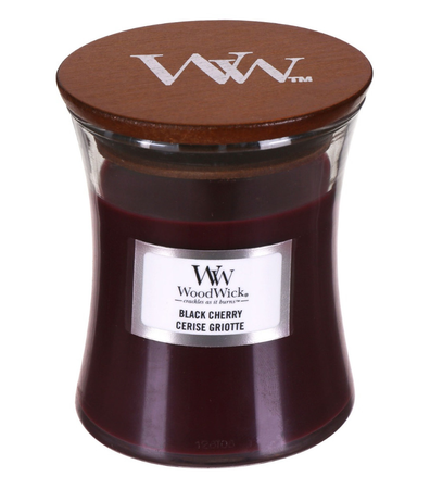 Świeca WoodWick wprowadzi do Twojego domu kojący dźwięk iskrzących płomieni i zachwycający zapach. Świece Woodwick posiadają specjalne drewniane knoty PLUSWICK®, które wydają dźwięk palonego w kominku drewna i zapewniają prawidłowe wypalanie świecy. Wyjątkowy kształt świec i szeroki wybór zapachów pozwolą Ci stworzyć dekorację wnętrza na najwyższym poziomie. Natomiast mocno nasycone zapachem i długotrwałe woski WoodWick są świetnym sposobem na zapach bez płomienia. Słodki zapach rozpieszczający zmysły aromat soczystych wiśni.