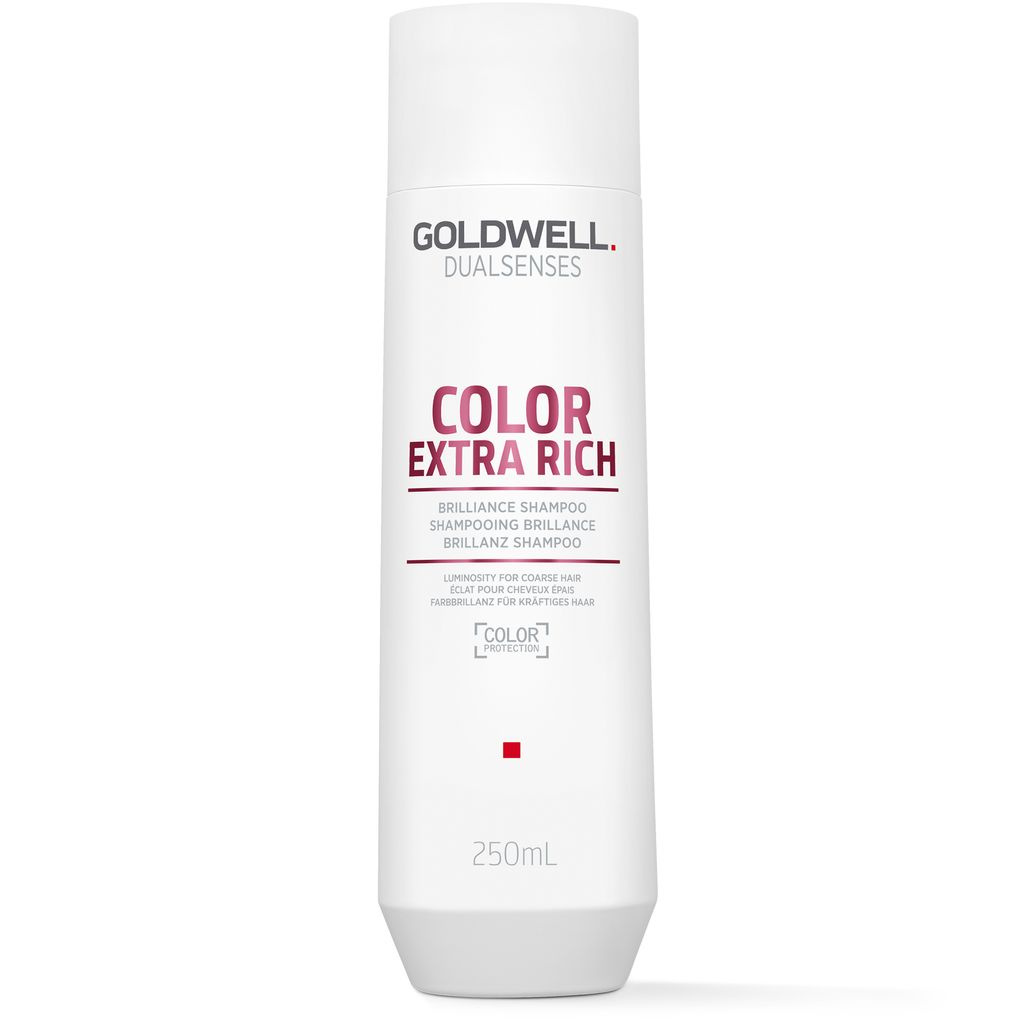 Goldwell Dualsenses Color Extra Rich Shampoo to profesjonalny szampon chroniący kolor włosów farbowanych i rozjaśnianych. Intensywnie nawilża, wygładza i podkreśla głębię barwy, sprawiając, że włosy stają się miękkie, pełne blasku i łatwe w układaniu. Dzięki technologii FadeStopFormula skutecznie zapobiega wypłukiwaniu koloru już od pierwszego mycia.