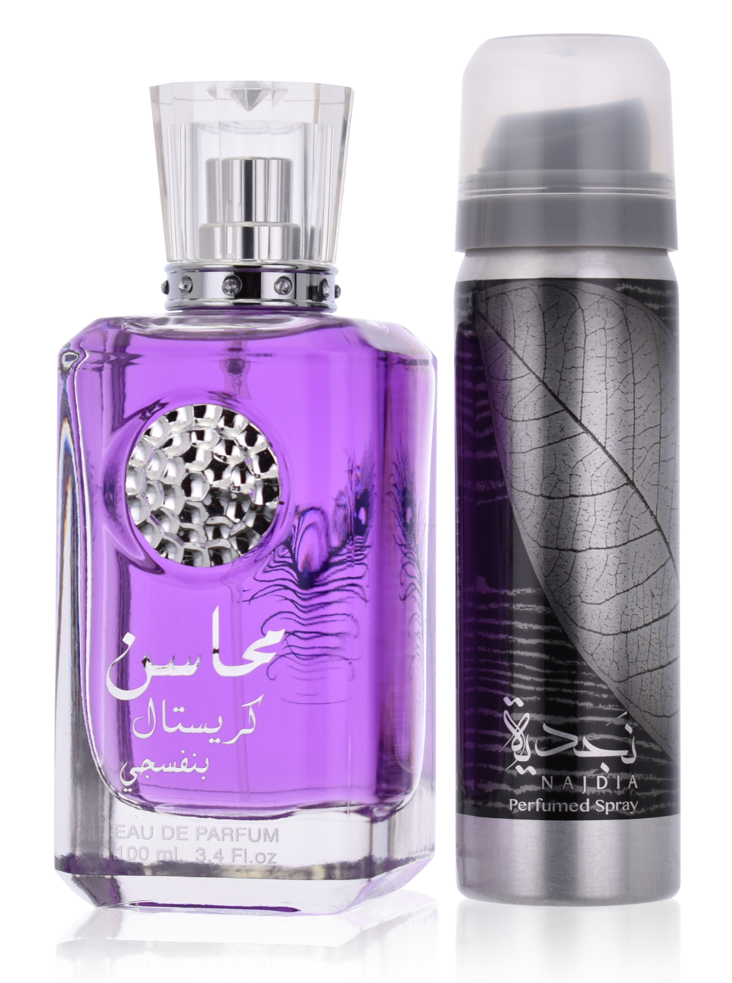 Lattafa Mahasin Crystal Violet Woda Perfumowana 100 ml + Dezodorant 50 ml Zestaw