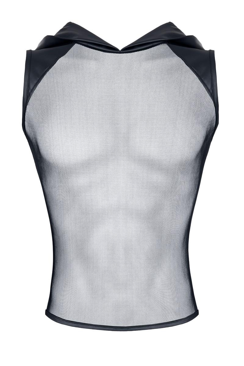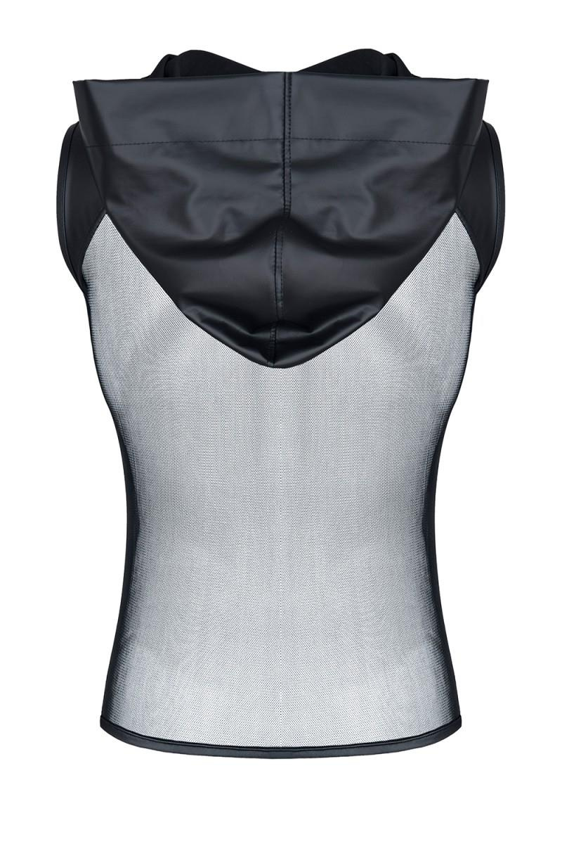 Nowoczesny, prowokujący i pełen charakteru – męski t-shirt bez rękawów od Regnes Fetish Planet to idealny wybór dla odważnych mężczyzn ceniących wyrazisty styl. Wykonany z elastycznego, połyskującego materiału, świetnie podkreśla muskulaturę, a kaptur dodaje tajemniczego, fetyszowego akcentu.