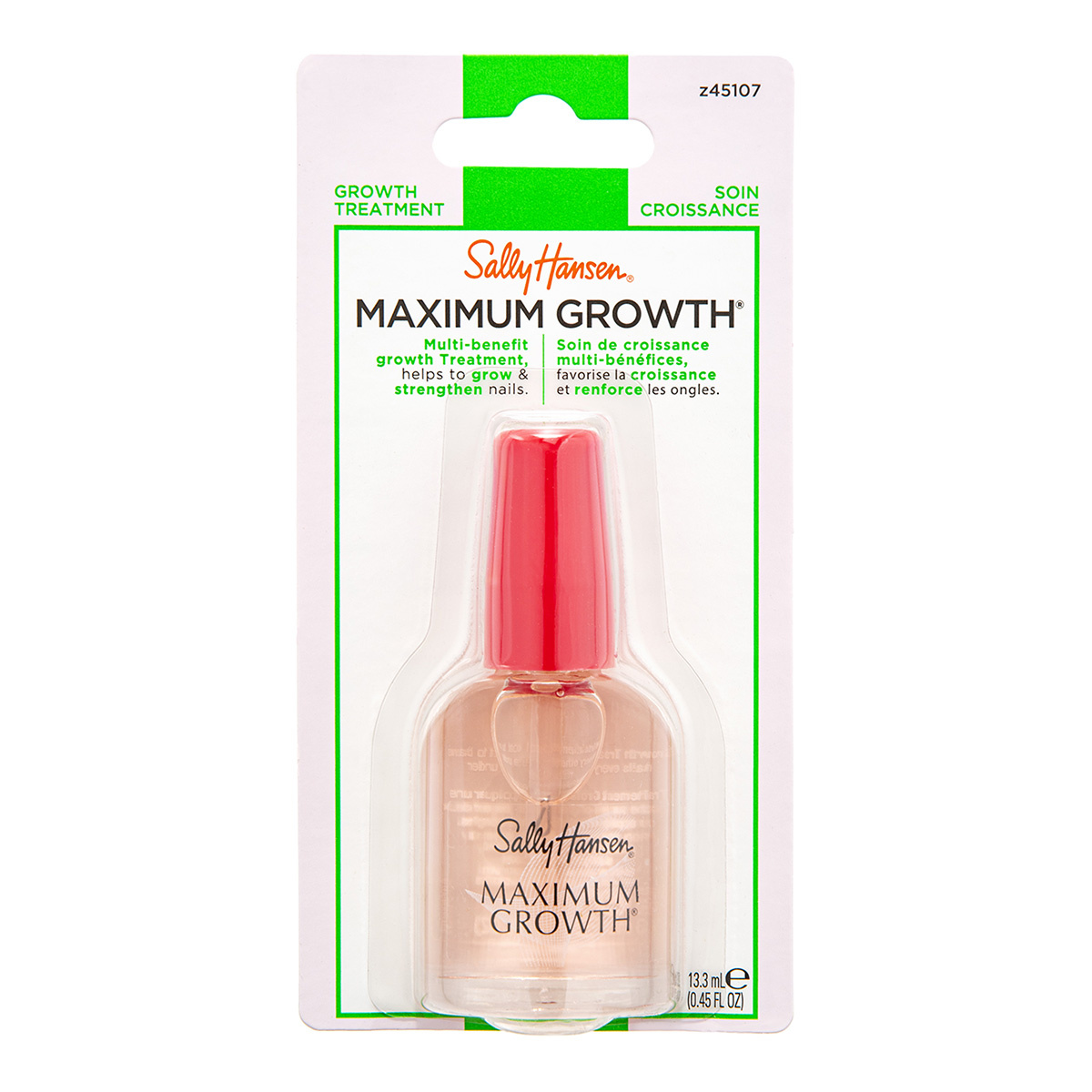 Sally Hansen Maximum Growth to skuteczna odżywka stworzona z myślą o słabych, łamliwych i wolno rosnących paznokciach. Jej zaawansowana formuła z proteinami i witaminami intensywnie wzmacnia płytkę, zapobiega rozdwajaniu i przyspiesza naturalny wzrost paznokci. Regularne stosowanie sprawia, że paznokcie stają się twardsze, gładsze i bardziej odporne na uszkodzenia.