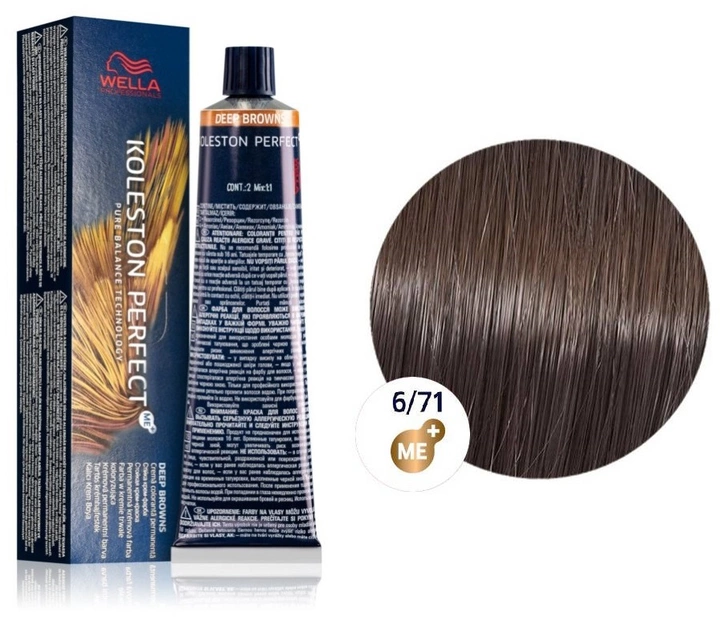 Wella Professionals Koleston Perfect ME+ Farba do Włosów Deep Browns 6/71 to trwała koloryzacja o głębokim, chłodnym odcieniu brązu z nutą popielu i popielatego fioletu. Innowacyjna technologia ME+ minimalizuje ryzyko podrażnień i reakcji alergicznych, a jednocześnie zapewnia intensywny, równomierny kolor pełen blasku. Formuła gwarantuje do 100% pokrycia siwych włosów, długotrwały efekt i zdrowy wygląd fryzury. To idealny wybór dla osób poszukujących profesjonalnej jakości koloryzacji z maksymalną ochroną włosów.