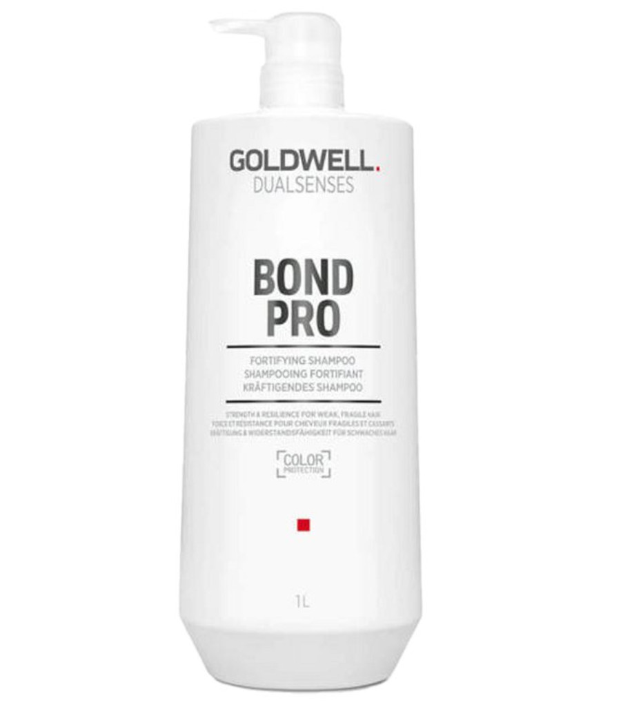 goldwell bond pro shampoo to szampon wzmacniający do włosów niszczonych. szampon oczyszcza skórę głowy z nadmiaru sebum i włosy z nadmiaru środków do stylizacji. zapewnia natychmiastową pielęgnację włosom osłabionym, kruchym, łamliwym po zabiegach chemicznych. szampon zawiera formułę fadestopformula, która minimalizuje blaknięcie koloru z każdym myciem.