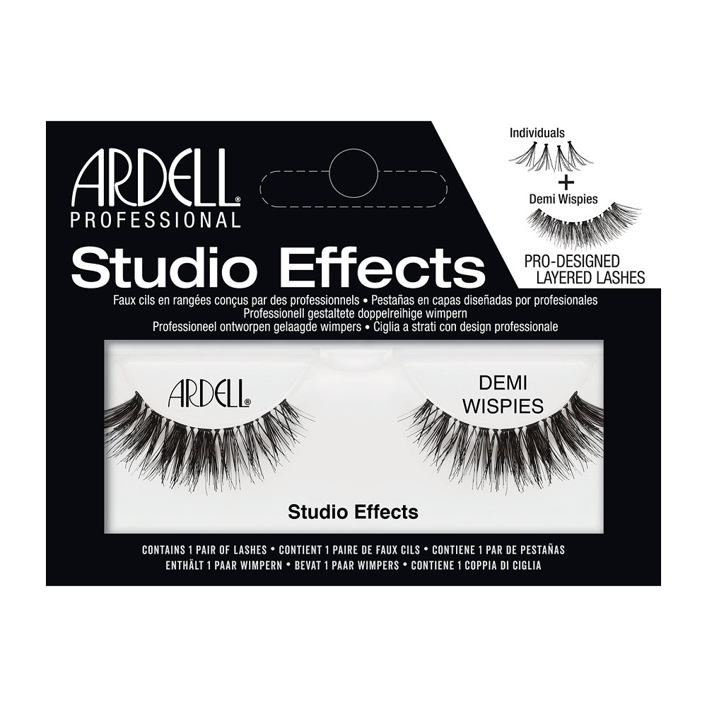 Sztuczne rzęsy Studio Effects Demi Wispies wykonane z naturalnego, ludzkiego włosa, które poddano sterylizacji. Rzęsy umieszczone zostały na bezbarwnym, elastycznym pasku, który po aplikacji na powiekę staje się niewidoczny dla ludzkiego oka.